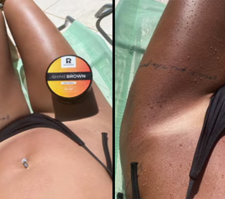 Elevate your tan with our mouth-watering orange-scented Shine Brown oil that transforms your skin into a rich, glowing bronze.