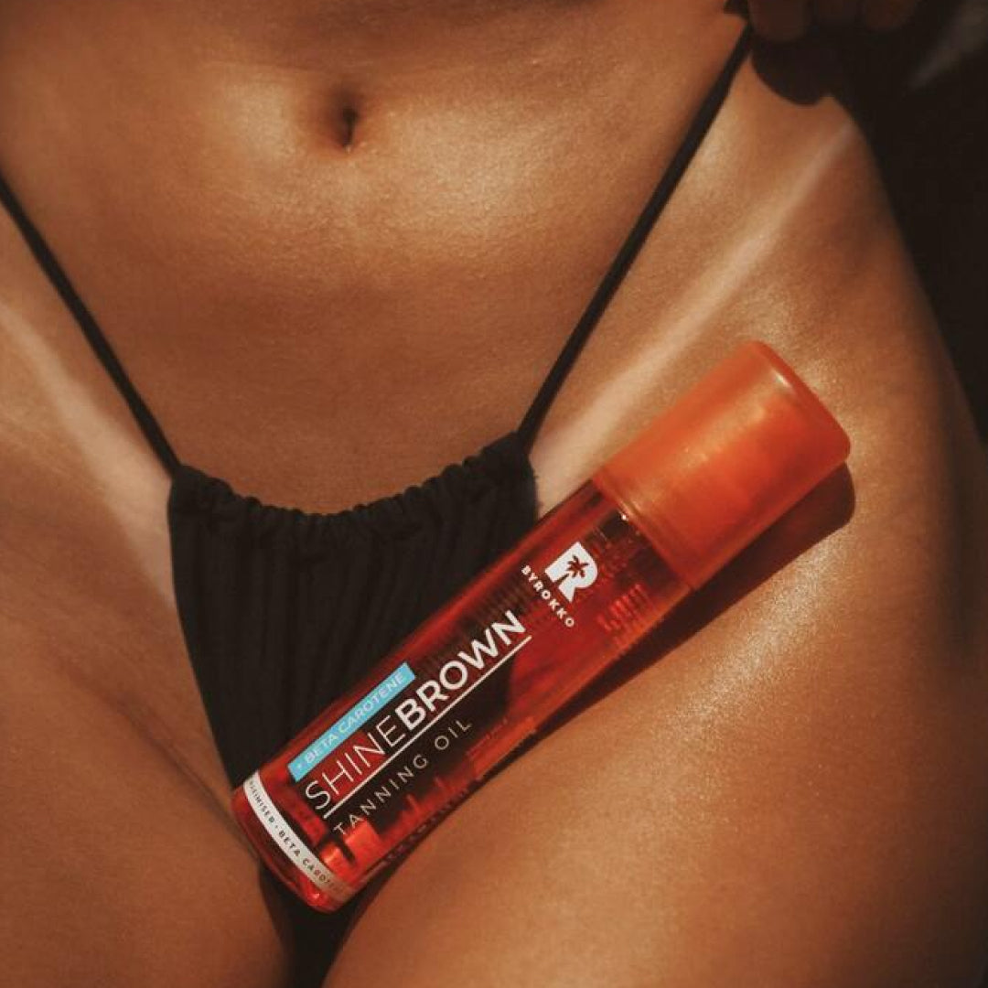 Elevate your tan with our mouth-watering orange-scented Shine Brown oil that transforms your skin into a rich, glowing bronze.