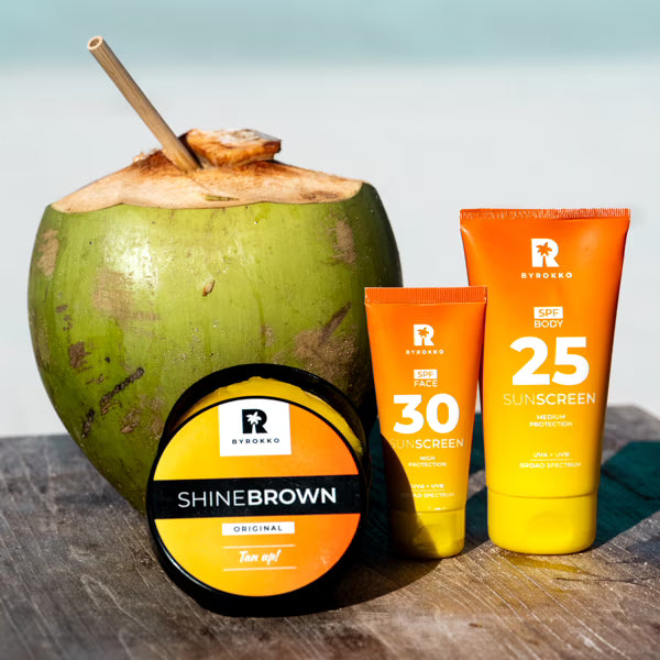 Body Sunscreen SPF 25 (150 ml) + Face Sunscreen SPF 30 (50 ml) + Premium tan-boosting cream (210 ml)