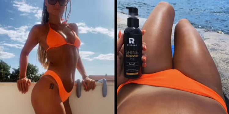 Achieve a natural, darker, and long-lasting tan quickly, suitable for all skin types. Shine Brown by ByRokko is your shortcut to a beautifully bronzed complexion. Enjoy the sweet and fresh tropical fragrance while achieving incredible tanning results. The lightweight, non-greasy formula absorbs quickly, leaving no stains or stickiness.