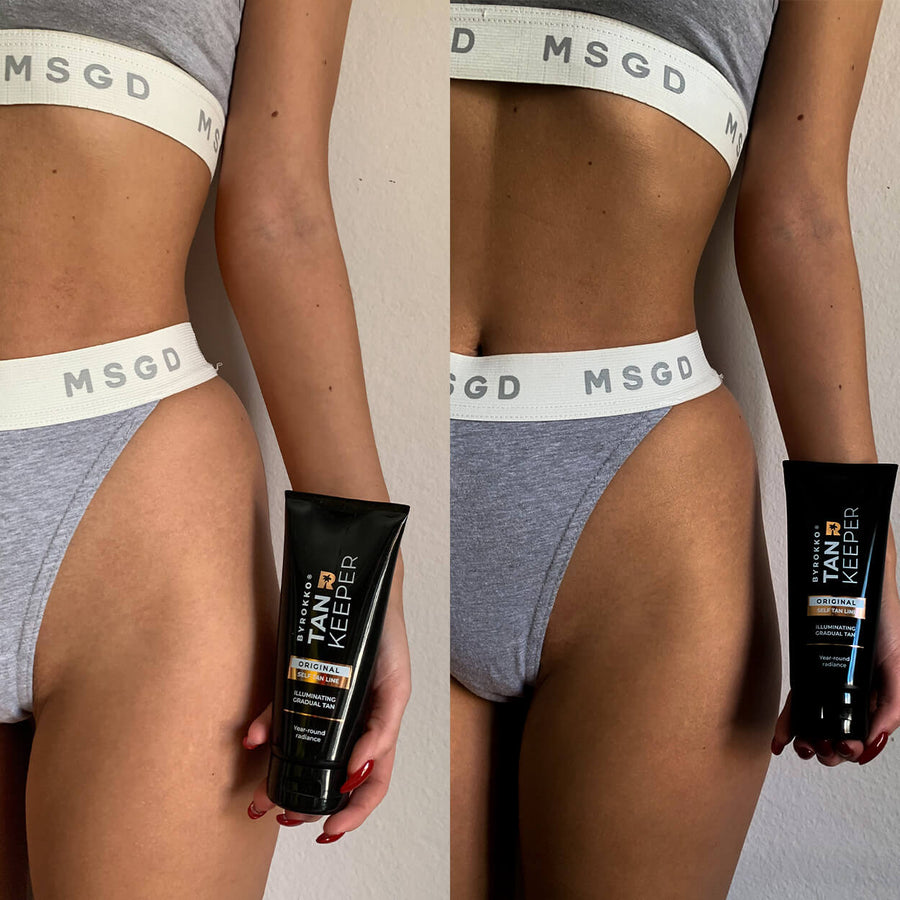 This skin-loving product combines a deeply hydrating moisturizer with a tanning effect - amazing for prolonging the glow of your summer skin! With our famous BYROKKO™ formula, it allows you to gradually build colour and customize the perfect tan for your skin tone.